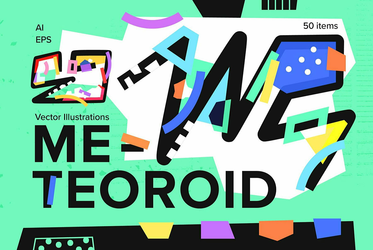 These Meteoroids are out there—a passing satellite photographed old Foreigner and Bronski Beat albums strewn on one, and NASA detected the Flashdance soundtrack coming from another. Add some potent Zubaz Eighties splash to any project with these twisting shapes from space. Each one is individual, a crazy signature full of color and energy.