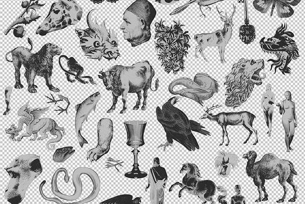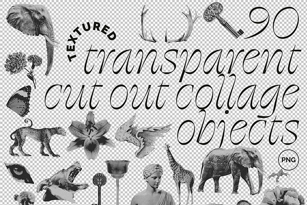 Murky, mysterious and horror inspired, this set of collage graphics is an extension of the Phantasma trend that you're seeing creep into everyone's moodboards lately. Delicately textured and put into a warm black and white, these will be an infinite source of fun to put together in any project.