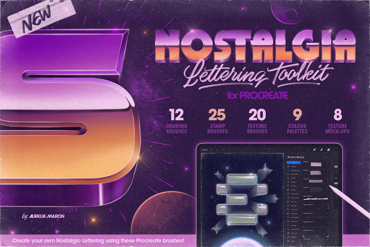 Nostalgia Lettering Toolkit For Procreate by Aurelie Maron
